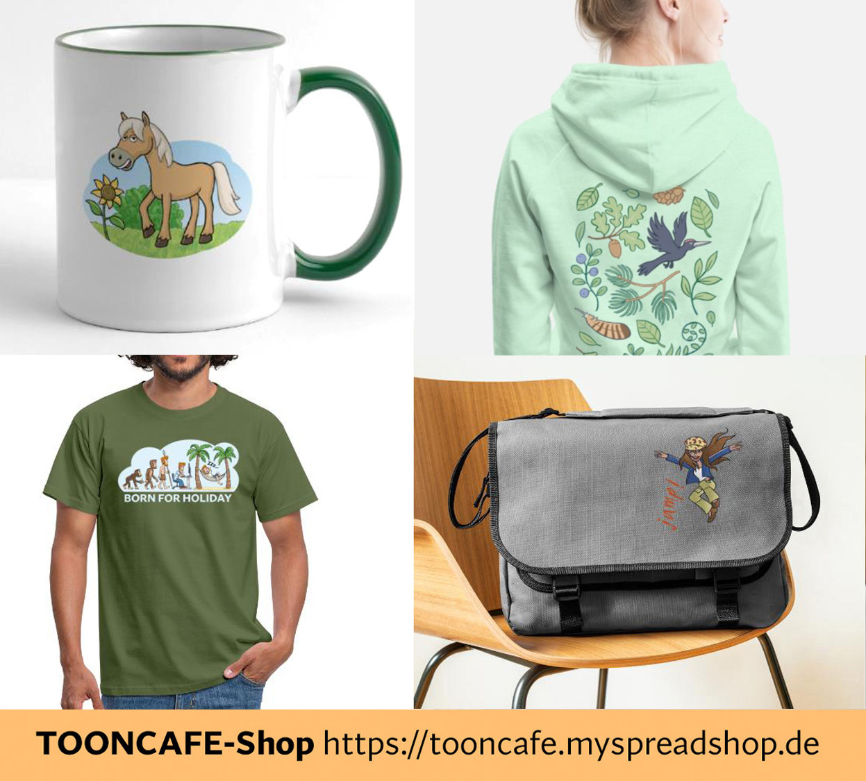 Zu Ausstellungen, Events oder neben Auftragsarbeiten entstehen immer wieder ganz eigene Werke, die wir hier präsentieren möchten. Hier finden Sie signierte Comic-Bücher und Artikel wie Poster, T-Shirts, Tassen und Sticker mit TOONCAFE-Designs. Von Stefan Atzenhofer finden Sie hier ausgewählte Gemälde, die zum Verkauf stehen. Einen weiteren Einblick gibt es auch auf der Künstlerwebsite: stefanatzenhofer.de Kontakt: office@tooncafe.de