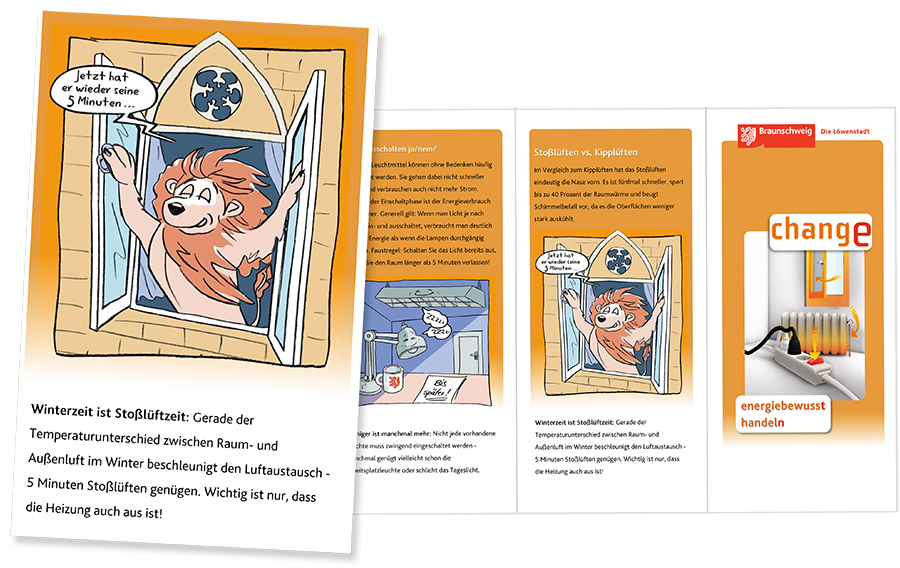 Cartoons für einen Flyer zum Thema Energie sparen.