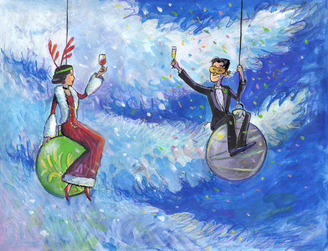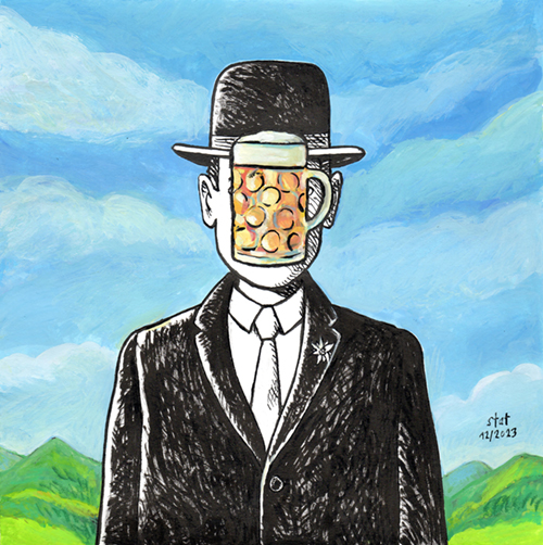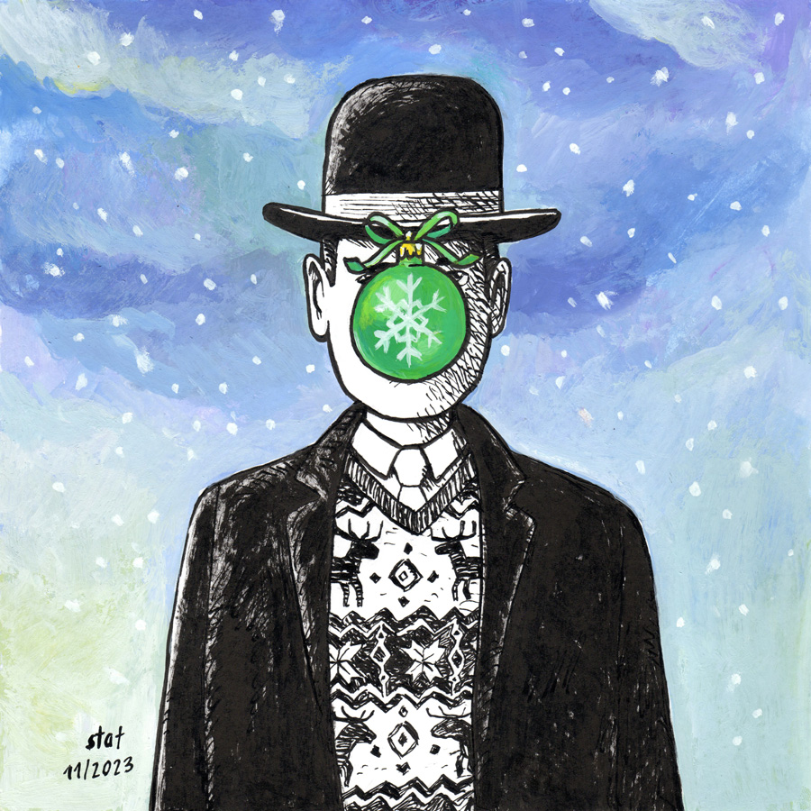 Sohn des Weihnachtsmannes (frei nach Magritte) Tusche und Gouache auf Papier · 20 x 20 cm |
