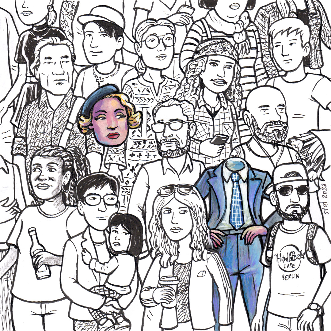![]() Marlene in the crowd Tusche und Gouache auf Papier · 20 x 20 cm |