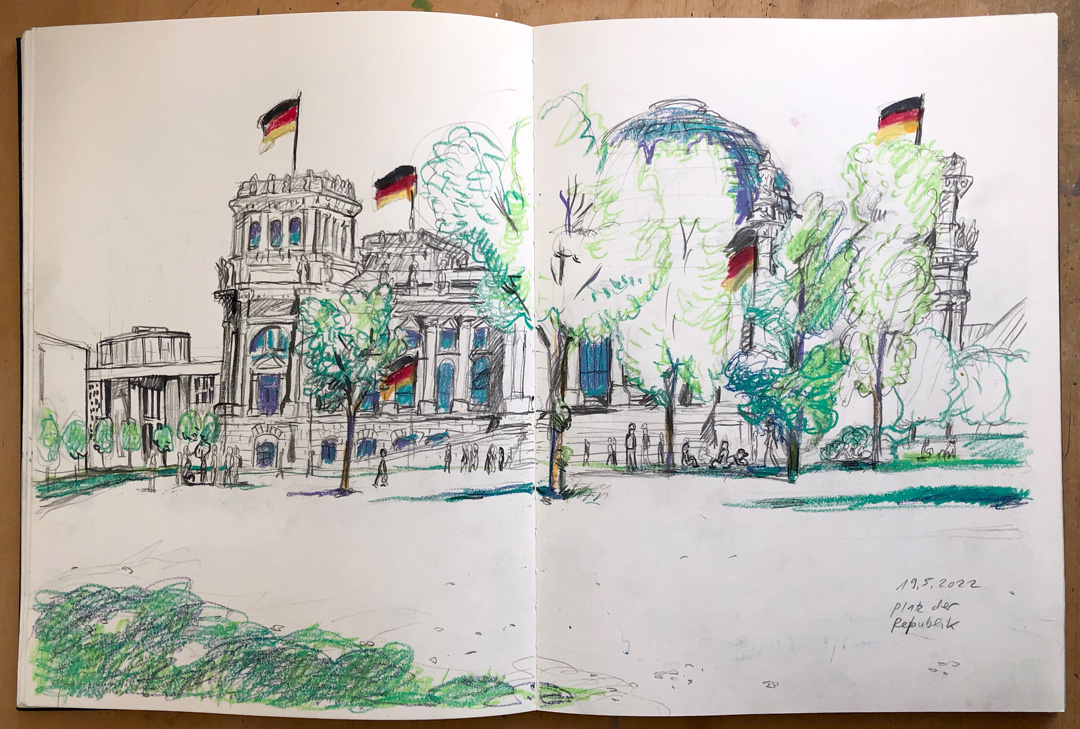 ![]() Deutscher Bundestag Skizzenbuch · 30 x 40 cm · 2022 |