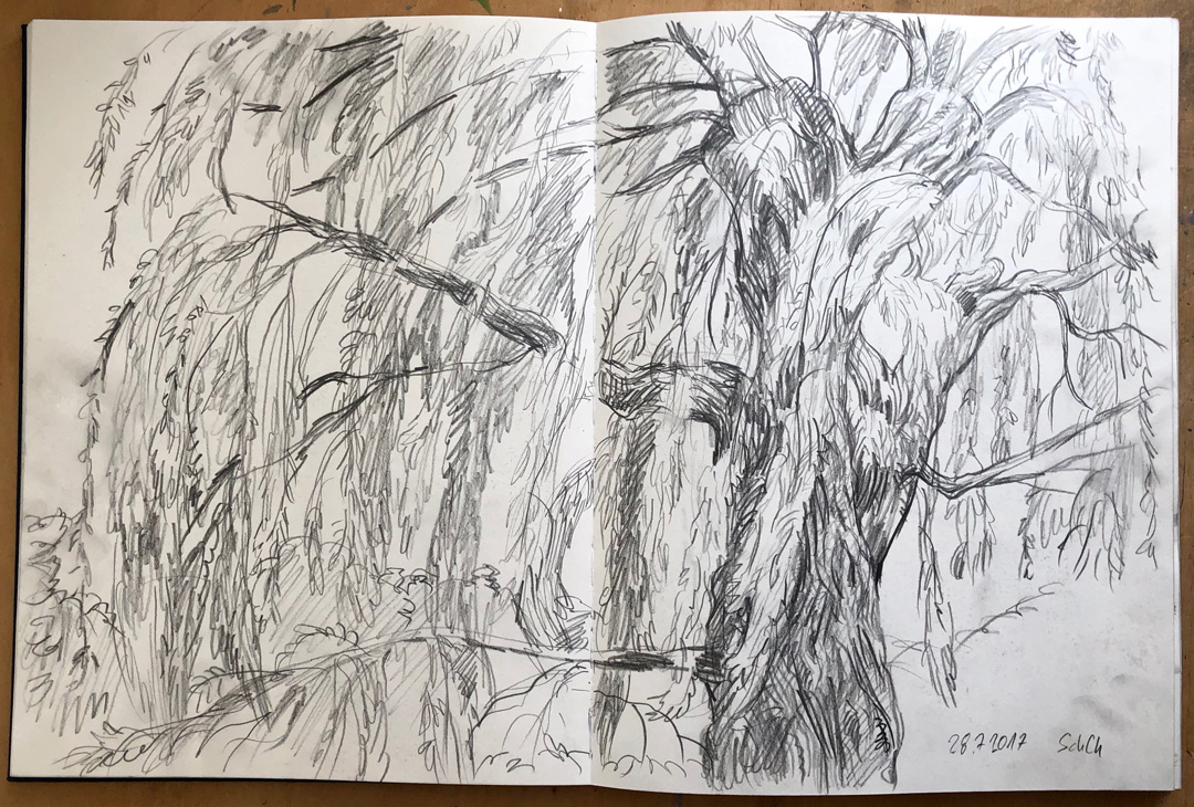 ![]() Trauerweide, Schlosspark Charlottenburg Skizzenbuch · 30 x 40 cm · 2017 |