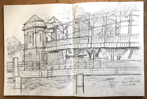 ![]() Tegeler Hafenbrücke (Sechserbrücke) Skizzenbuch · 30 x 40 cm · 2022 |