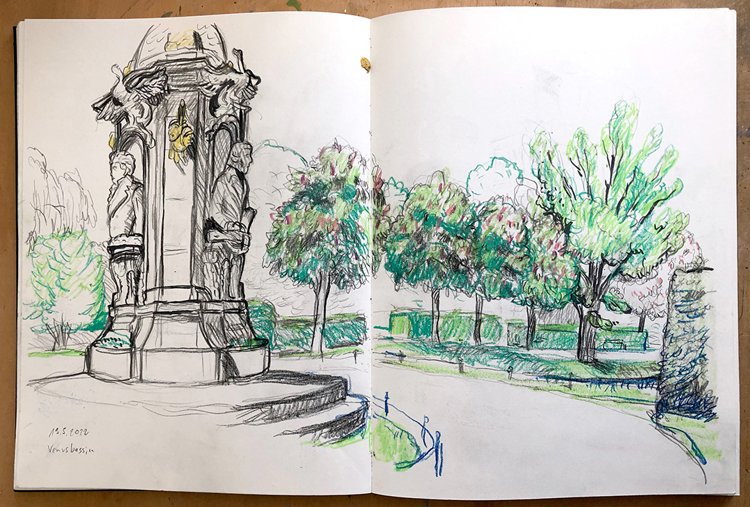 ![]() Beethoven-Haydn-Mozart-Denkmal (Tiergarten Berlin) Skizzenbuch · 30 x 40 cm · 2022 |